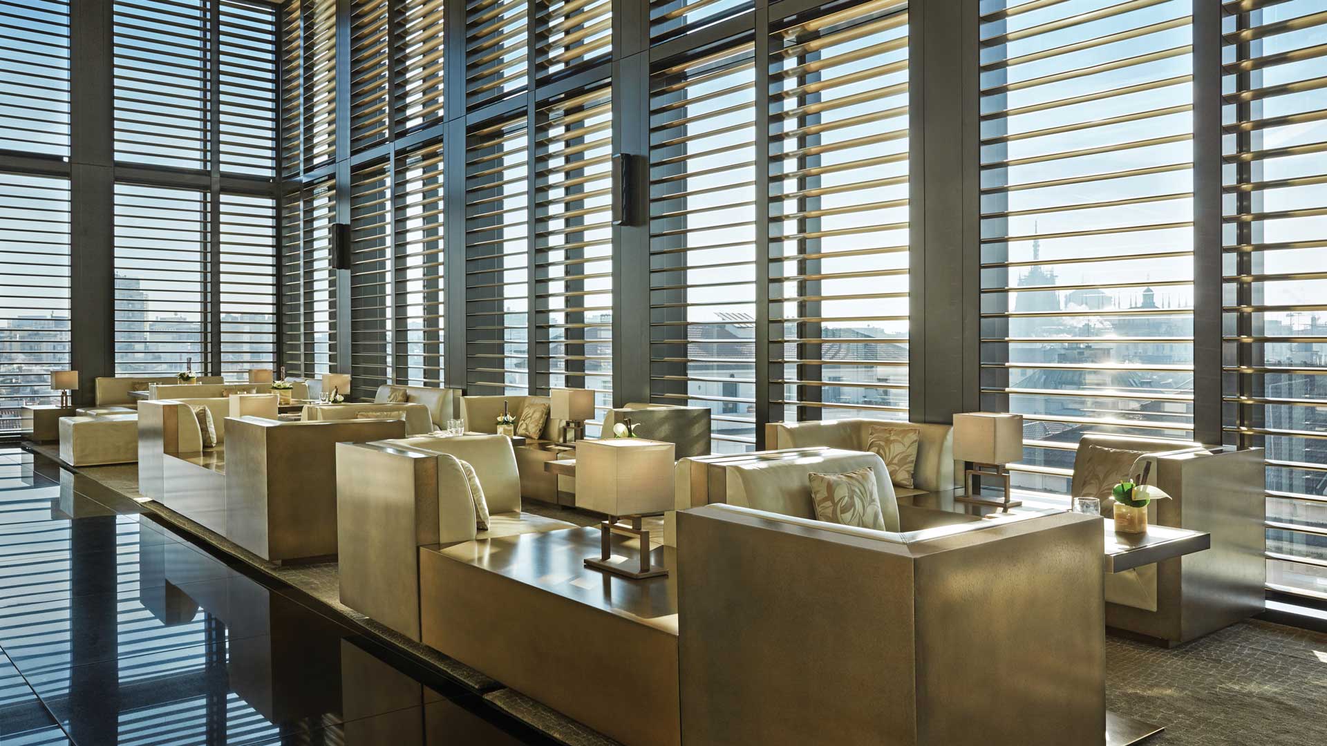 Quando le porte dell’ascensore che conduce all’ultimo piano dell’Armani building si aprono, la vista sullo skyline milanese rapisce immediatamente lo sguardo e concede uno scorcio privilegiato sui tetti meneghini. Un panorama che abbraccia la torre Velasca e il Duomo e si perde tra le incantevoli vie del quadrilatero della moda.