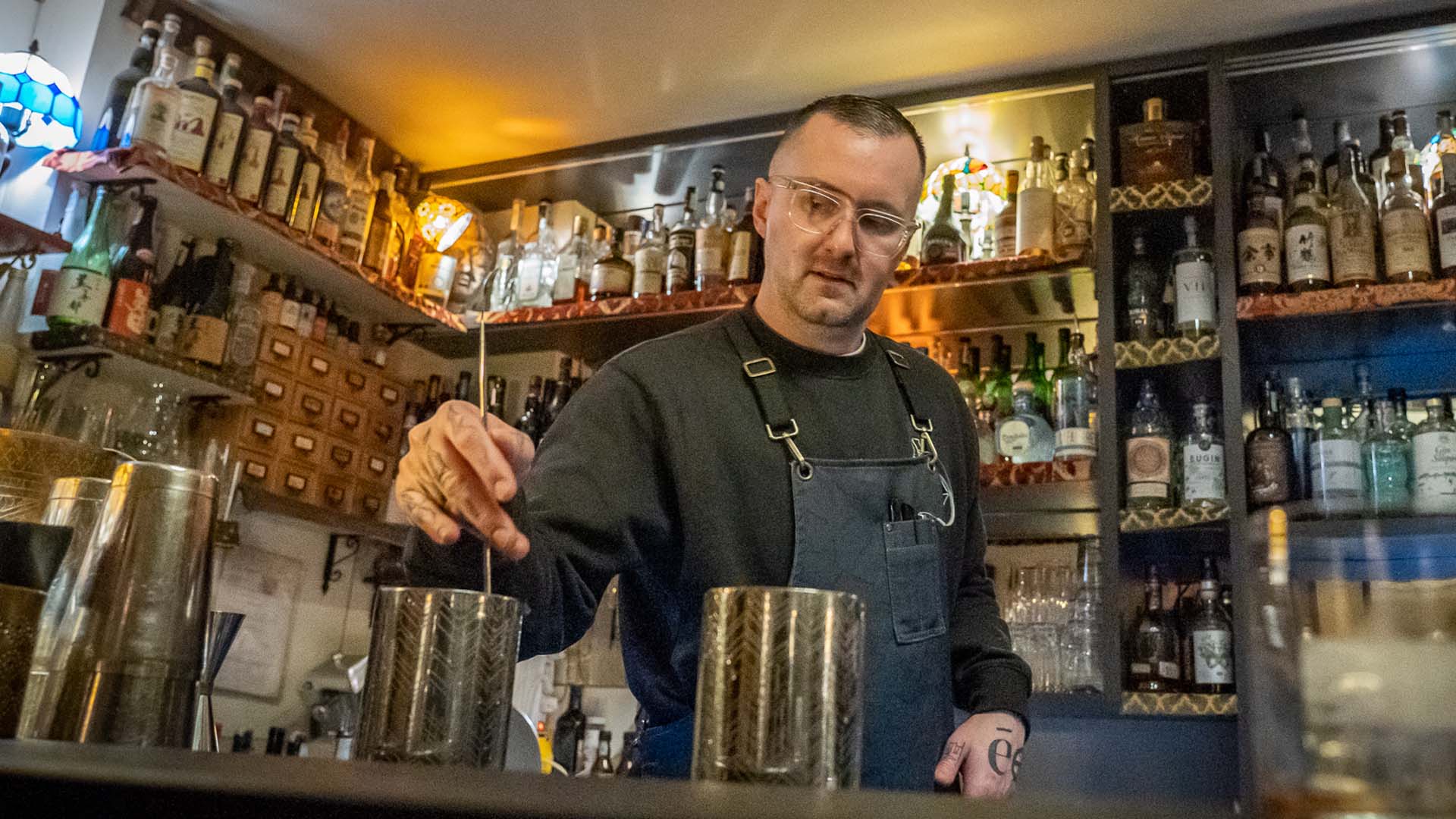 Dalla pedana del bancone de Il Mercante è andato in scena, invece, il mixologist Alex Kratena, co-owner del Tayēr+Elementary di Londra, locale dalla doppia anima secondo classificato ai 50 Best Bar 2021. Kratena, noto per il suo impegno sostenibile e la filosofia zero waste, ha proposto quattro cocktail dagli ingredienti originali come Neroli, Vetiver, Oak Moss e Tonka Bean, trasformando la piazza della mixology veneziana in un vero e proprio laboratorio creativo.