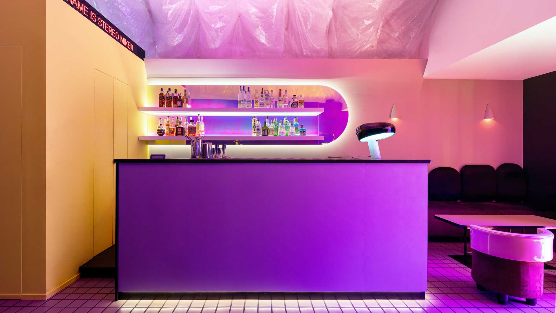 Entrare da Stereo Mike significa compiere un viaggio nel tempo, per tornare indietro con la mente fino agli anni ’90. Un’epoca senza social né smartphone, ma piena di euforia. E proprio il movimento e la mutazione sono gli elementi che caratterizzano il cocktail bar progettato dall’architetto, che per il nome si è ispirato alle prime note di Drinking in Los Angeles, brano dei Bran Van 3000.