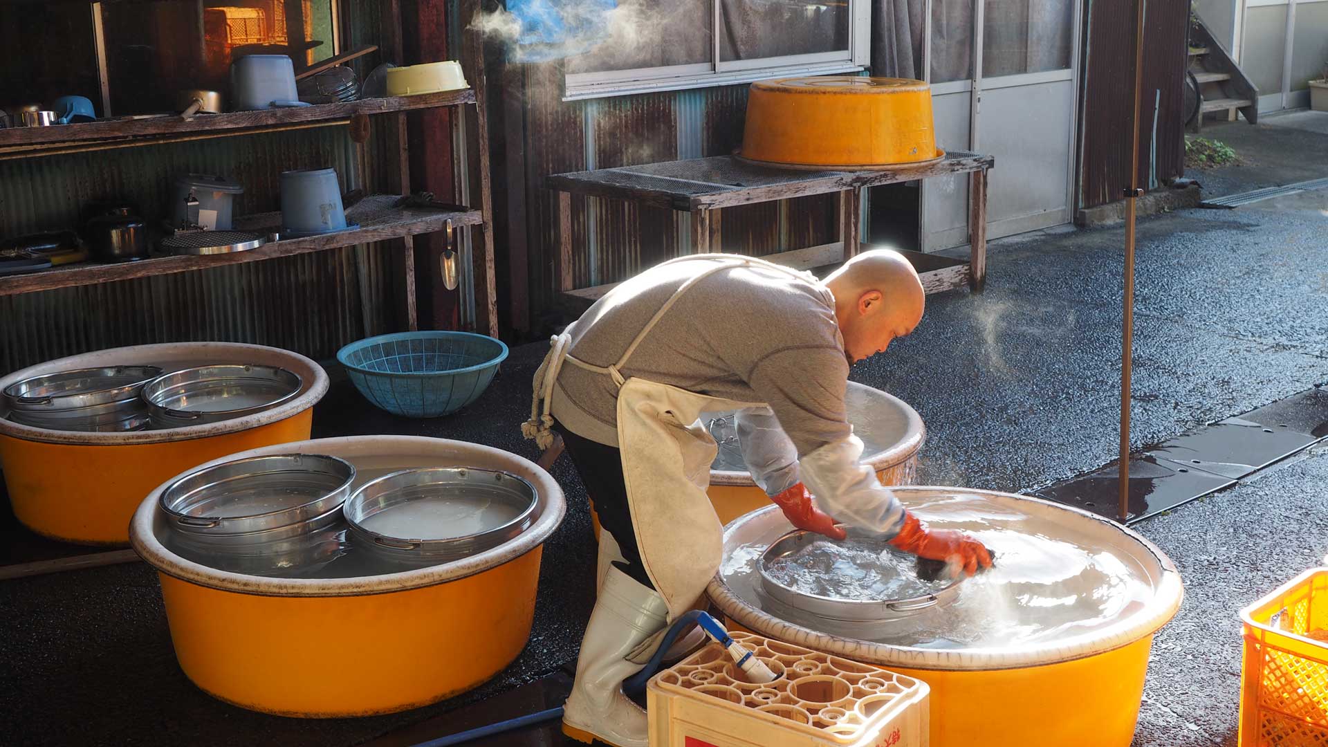 Proseguendo nel viaggio all’interno della prefettura di Miyazaki un altro luogo sacro per lo shochu da visitare è la distilleria Watanabe la cui filosofia si fonda sulla realizzazione di “una fermentazione nell’ambiente”. Oggi Koichiro Watanabe, alla quarta generazione, è un giovane distillatore che, insieme al fratello e alla madre, si occupa direttamente di ogni dettaglio dell’azienda. In particolare, la pulizia quotidiana delle patate dolci appena raccolte. Ogni tubero viene pulito e sbucciato, preservando però qualche piccola parte di terriccio che, per tradizione, dona letteralmente quel sapore naturale al distillato, conferendogli notevole profondità e ricchezza.