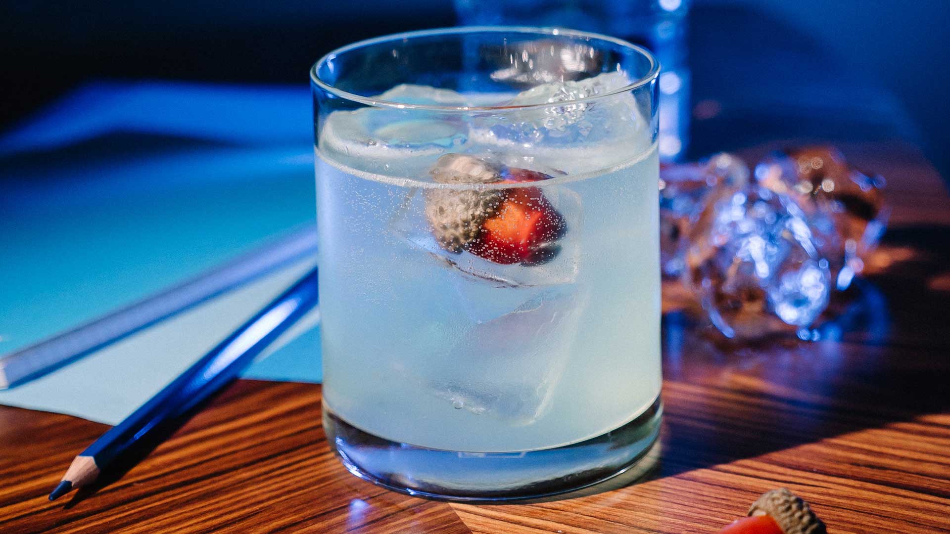 La cocktail list Colorful Homework si compone di 12 drink e a ognuno è associato un colore. Se nella grafica del menu il cocktail è rappresentato da un evidenziatore per mettere in risalto i nomi delle miscele, visivamente quella nuance fa la differenza perché determina anche l’impatto estetico del drink.