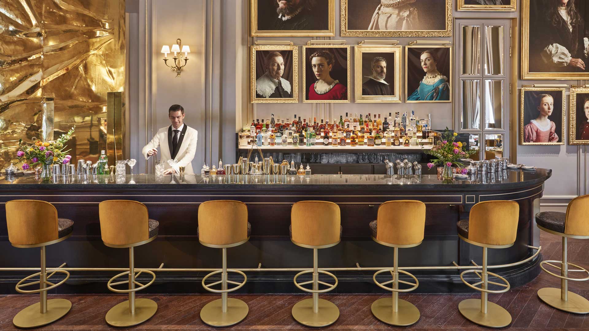 In the heart of the Golden Triangle of Art, Pictura finds its home at the Mandarin Oriental Ritz. Reopened three years ago after one of the most ambitious restorations in the history of luxury hospitality, this 1910 palace has been restored to its former glory by architect Rafael de La-Hoz and designers Gilles & Boissier. The bar, adorned with portraits of Spanish artists, stands out with its expansive counter. Here, cocktails are a feast for both the eyes and the palate, served in an atmosphere where Belle Époque elegance meets contemporary sophistication.