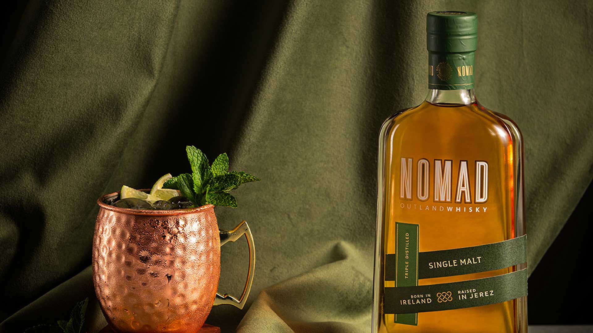 Nomad è considerato il primo Outland Whisky al mondo. Originato dal genio del master blender di González Byass, Antonio Flores, in collaborazione con uno dei più famosi esperti di whisky, Richard Paterson, Nomad è un premium blend prodotto da una selezione unica di oltre 30 whisky diversi di malto e grano, invecchiati da 5 a 8 anni, provenienti dalle Higland Scozzesi dove il prezioso liquido inizia l’invecchiamento per poi essere portato a Jerez dove finirà il suo “riposo”. E dall’esperienza di González Byass nasce Nomad Single Malt Irish Whisky che, prodotto in Irlanda, viene invecchiato per 3 anni in botti ex Bourbon per poi raggiungere l’Andalusia e invecchiare lentamente per 1 anno in botti ex sherry.