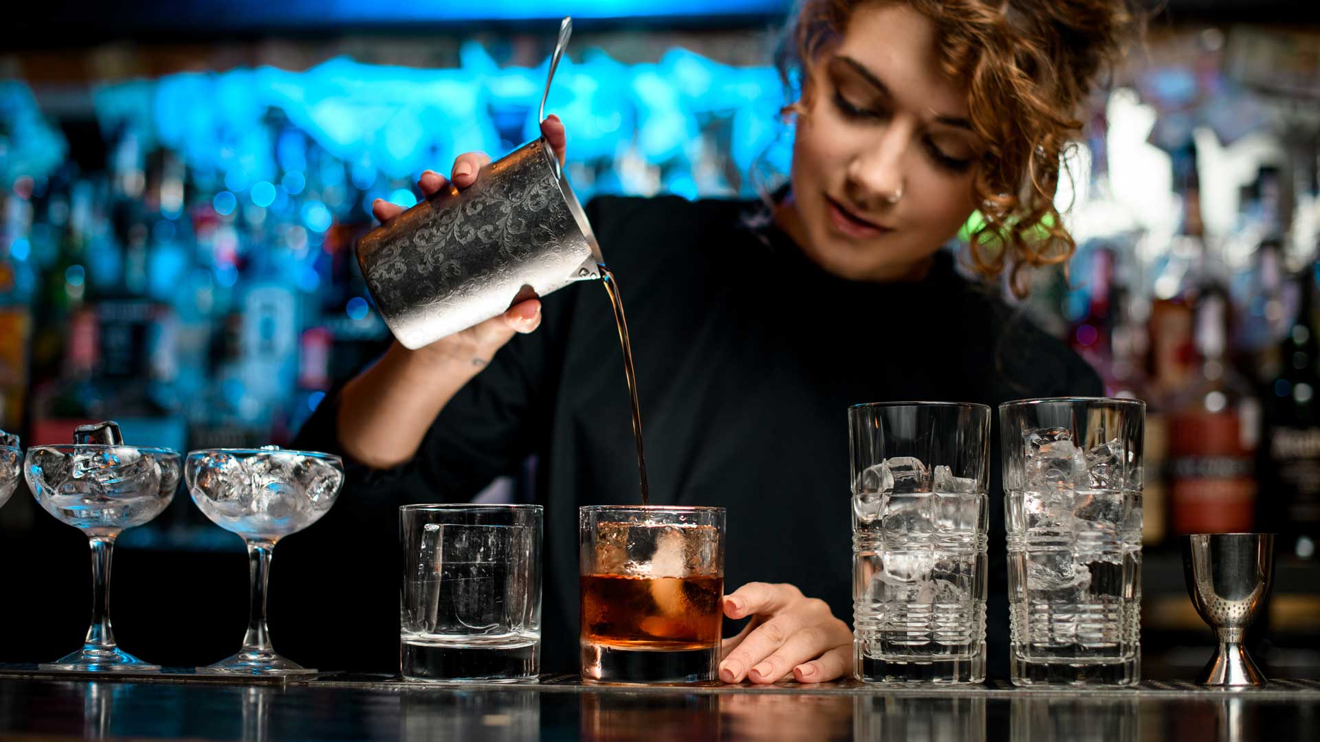 Alla base del Jamaican Firefly c’è la ricetta del Dark ‘n’ Stormy, cocktail fatto con rum scuro (la parte dark) e ginger beer (la parte stormy). Audrey ci pensa su, fa alcune prove e poi mette a punto il twist che la soddisfa, modificando le proporzioni fra gli ingredienti principali e aggiungendo lime e sciroppo di zucchero.