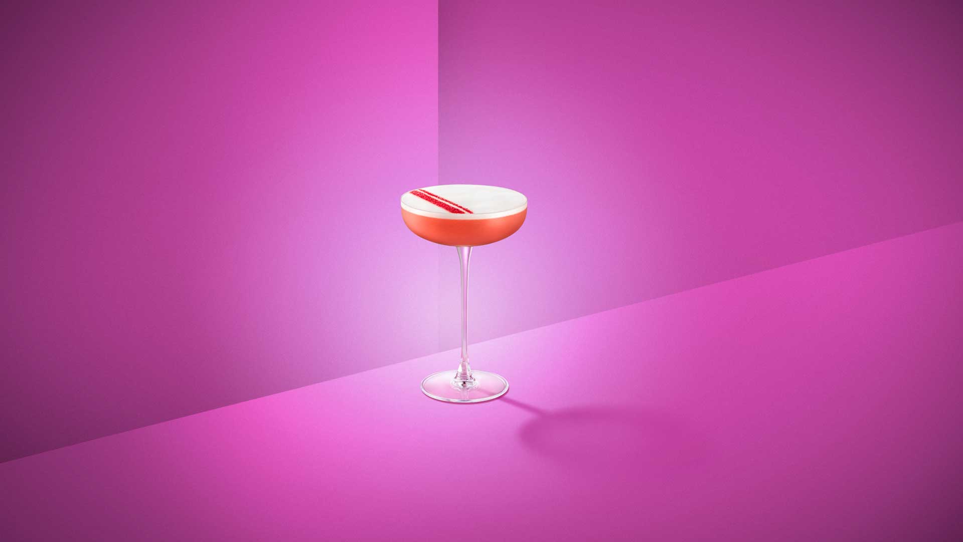 Decorare il cocktail con della polvere di lamponi essiccati.