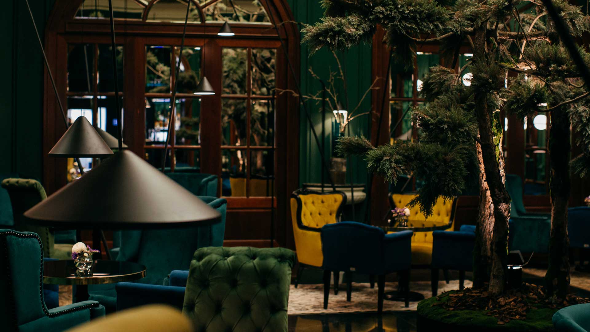 Al Mirror Bar gli elementi naturali si rivelano agli ospiti del cocktail bar già al primo sguardo. Un grande albero curato dal flower designer Róbert Bartolen si staglia infatti al centro della sala, circondato da boiserie verdi e carte da parati con motivi floreali.