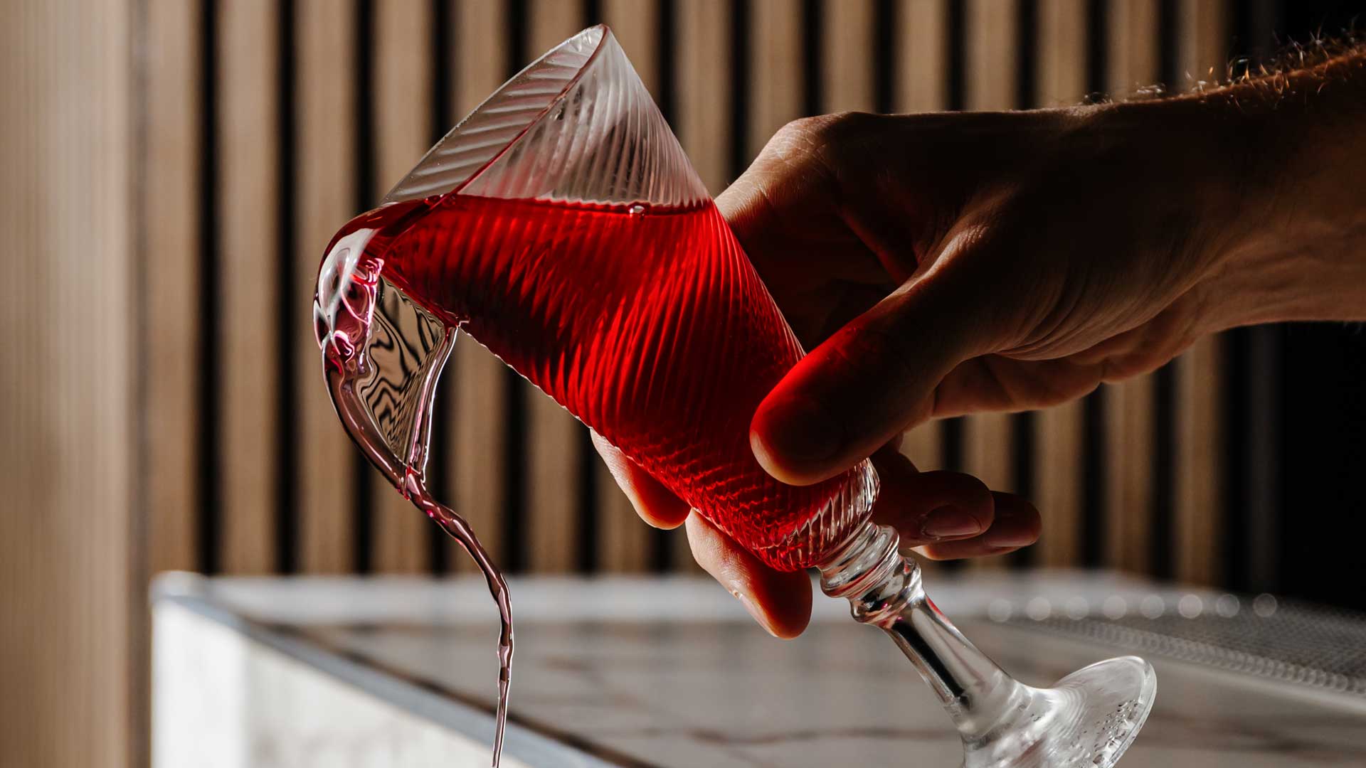 Il colore è il primo impatto: rosa-viola, saturo, brillante. Sembra una scritta al neon fuori da un locale senza orari. Ma è il gusto a completare il quadro. Il gin dà struttura, la cachaça aggiunge una nota tropicale. Il bitter al cacao porta profondità e una chiusura amara. Frutti rossi e yogurt ai mirtilli aggiungono corpo, cremosità e una sfumatura sensuale.
