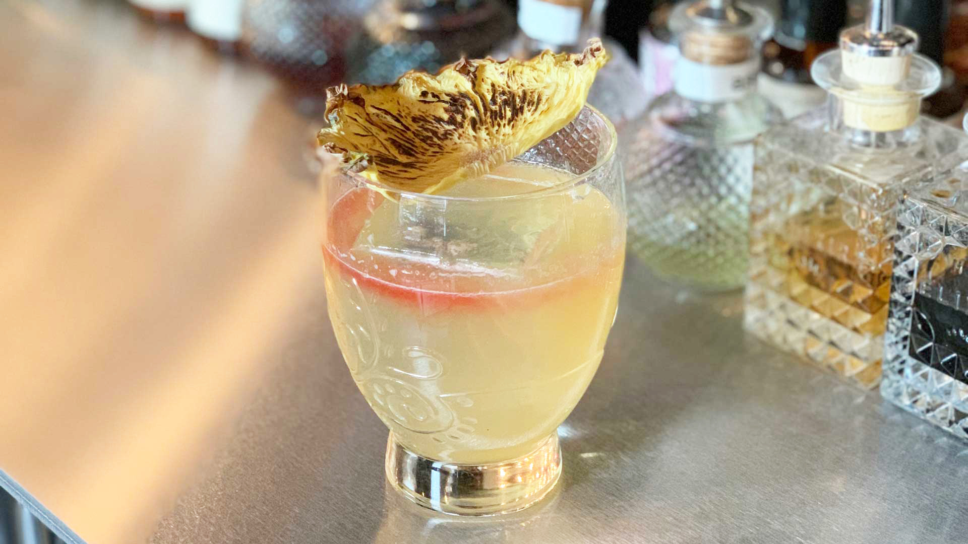 Presentare il cocktail con un po’ di profumo di ananas appoggiando una fetta essiccata sul bordo del bicchiere e affumicandola con un cannello.