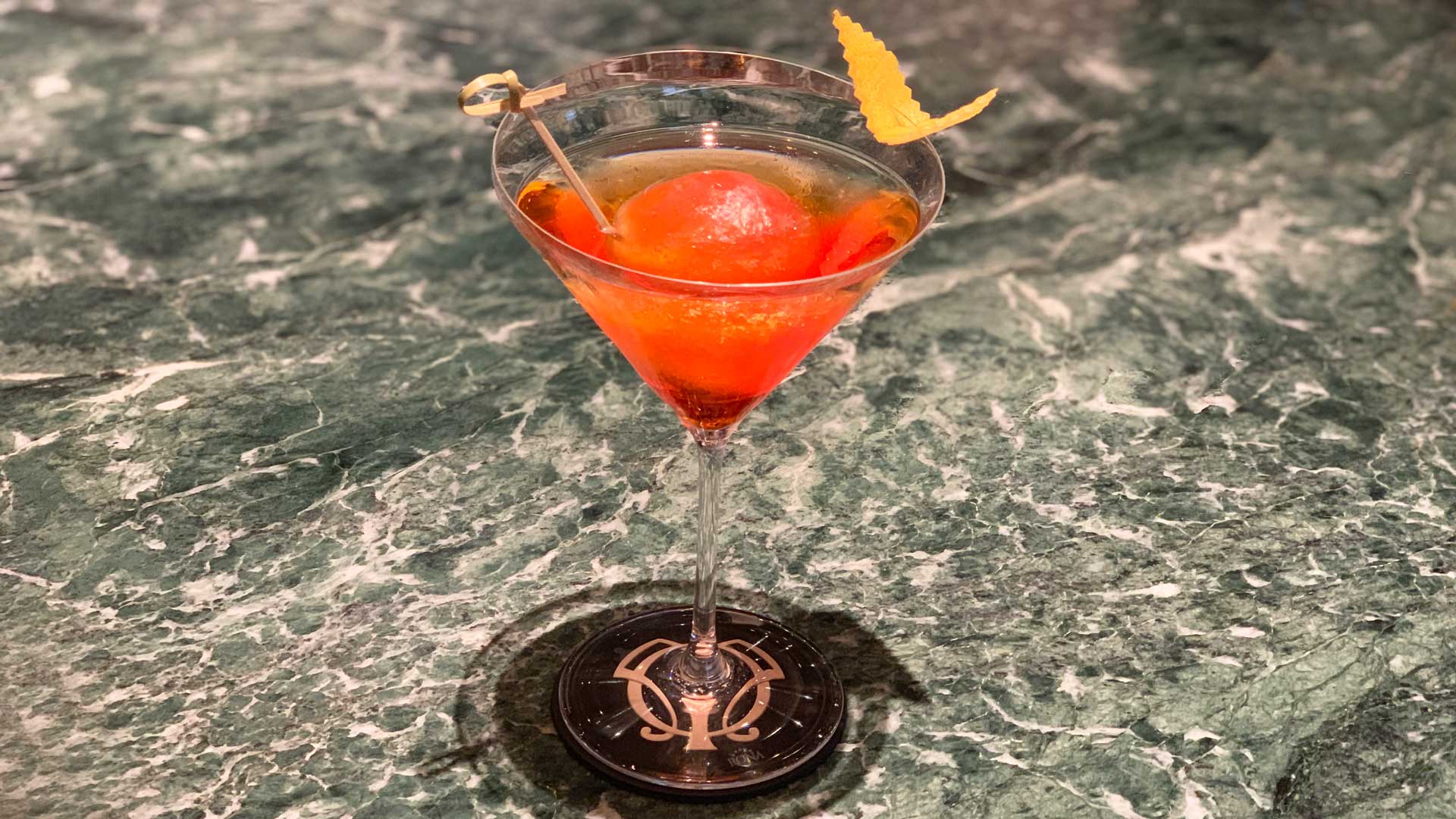 Realizzare in precedenza una sfera composta da soda e Aperol che andrà fatta solidificare in freezer attorno a un bastoncino con un’oliva. Una volta preparata sistemare la sfera al centro del bicchiere e aggiungere altro liquore agrumato, per dare consistenza al drink, e del Prosecco fino a colmare la coppa. La cosa divertente? Bevuta la parte liquida del cocktail il bar manager del Mio Lab suggerisce di eseguire un top up di Prosecco sulla sfera allungando in questo modo i tempi di degustazione del drink.