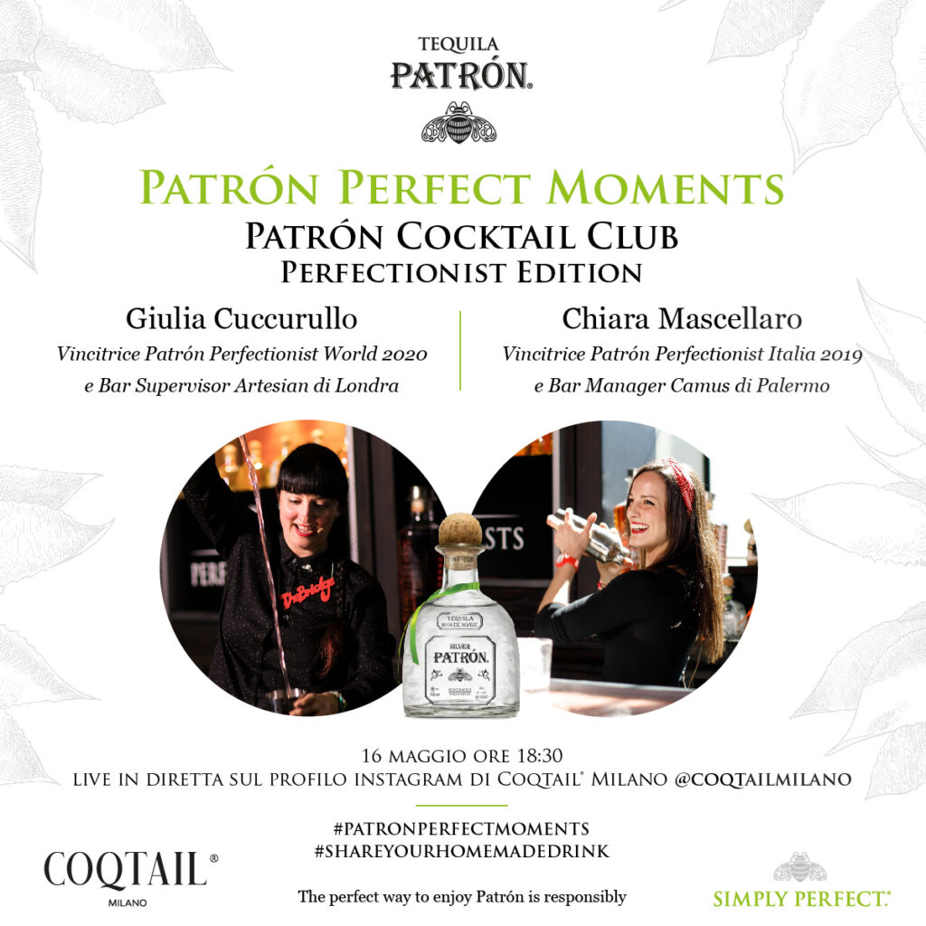 Realizzato in collaborazione con Coqtail® Milano, la prima community italiana dedicata alla mixology, l’iniziativa, parte dell’ampio progetto Patrón Perfect Moments mette in contatto consumatori e bartender, per un’ora al giorno due volte la settimana.